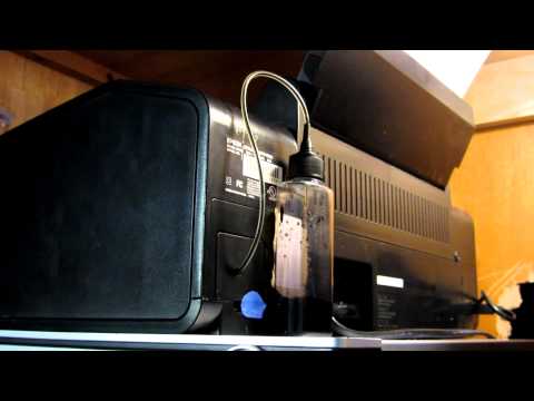 • Po kolei odpinamy dampery i pustą szczykawką pchamy powietrze przez węże z powrotem do pojemników z tuszem
